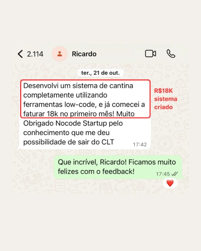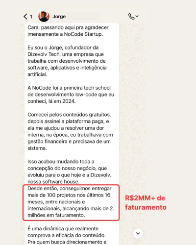 Also known as “Castelo”, he was amazed after creating his first no-code startup 100%. He then decided to combine the power of no-code with a focus on his passion, which has always been teaching.